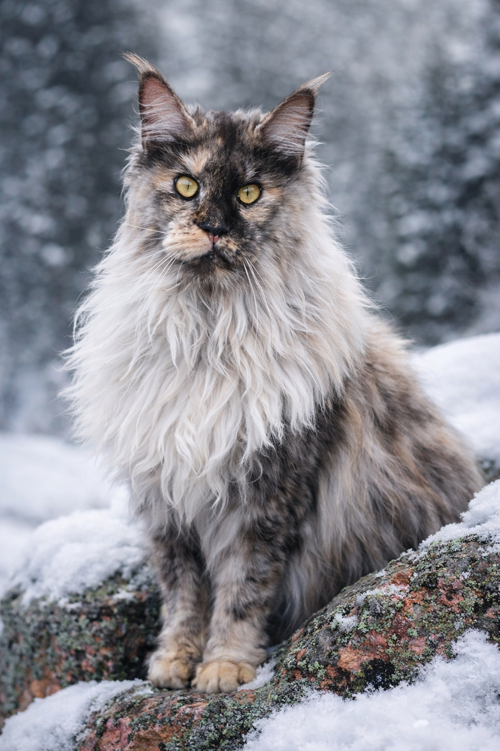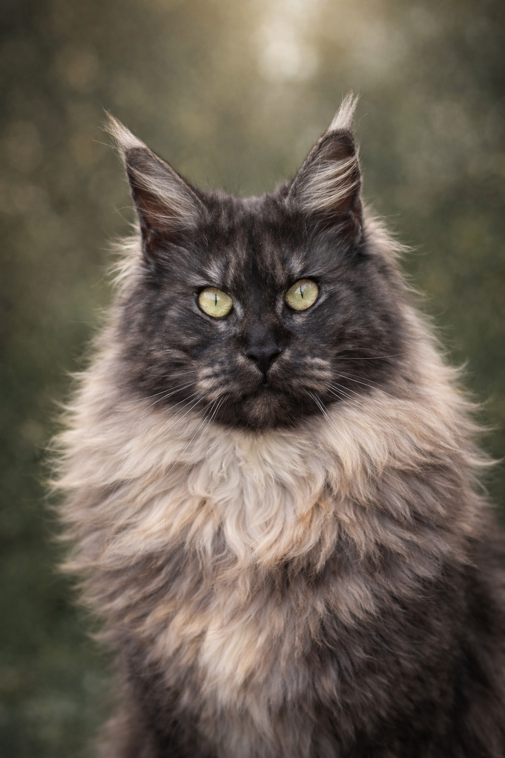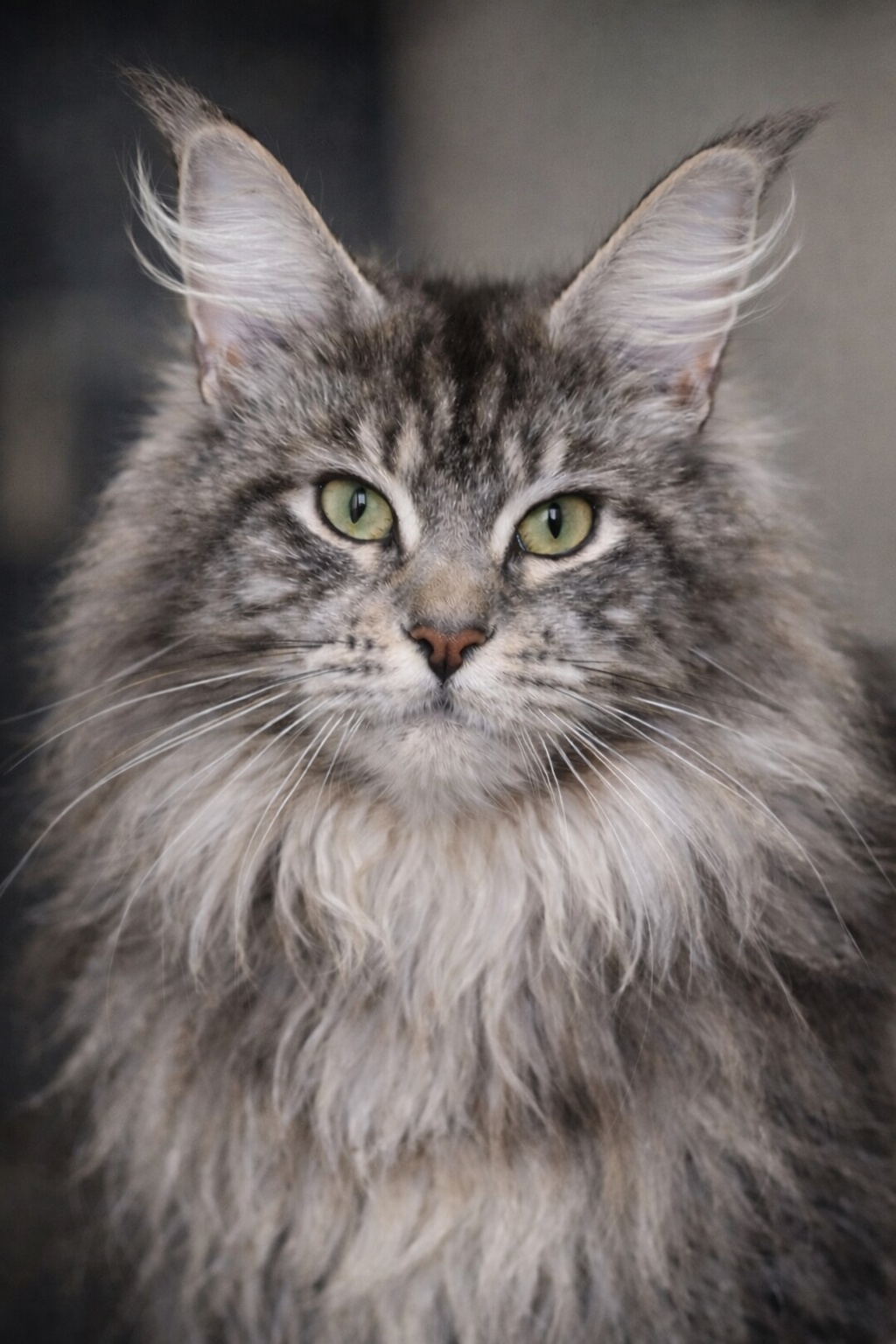Notre préférence va vers des Maine Coon à la robe de base black ou bleue, sur des tons shaded, silver, smoke, solide (avec un gros coup de coeur pour les femelles torties), au look sauvage,.et surtout je sélectionne un caractère doux, stable et zen qui font du Maine coon ce qu'il est aujourd'hui.